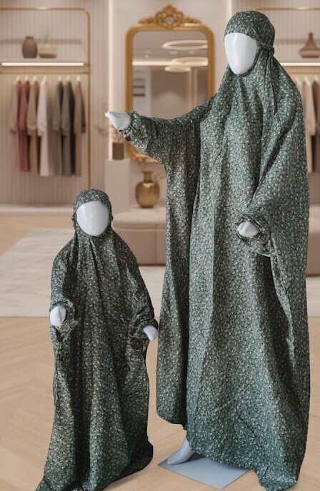 Mother Daughter Namaz Chadar (Green & White) Kid Age 4 to 8