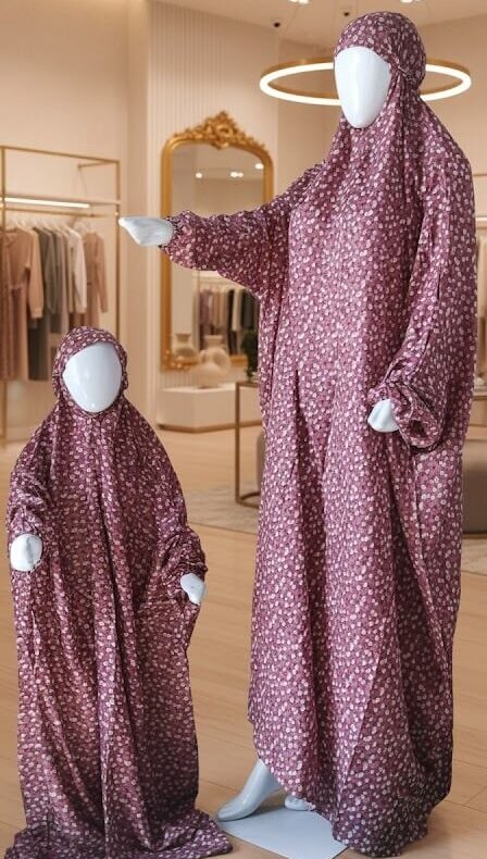 Mother Daughter Namaz Chadar (White & Purple) Kid Age 0 to 8